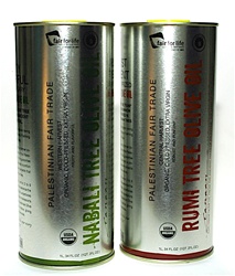 | Made from handpicked, tree-ripened organic olives, this olive oil has a rich taste and color traditional to Palestinian olive oil, one of the world's purist olive oils from some of the world's oldest olive trees. Choose from two different types of oil from different olive tree varieties: